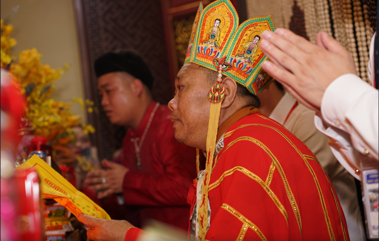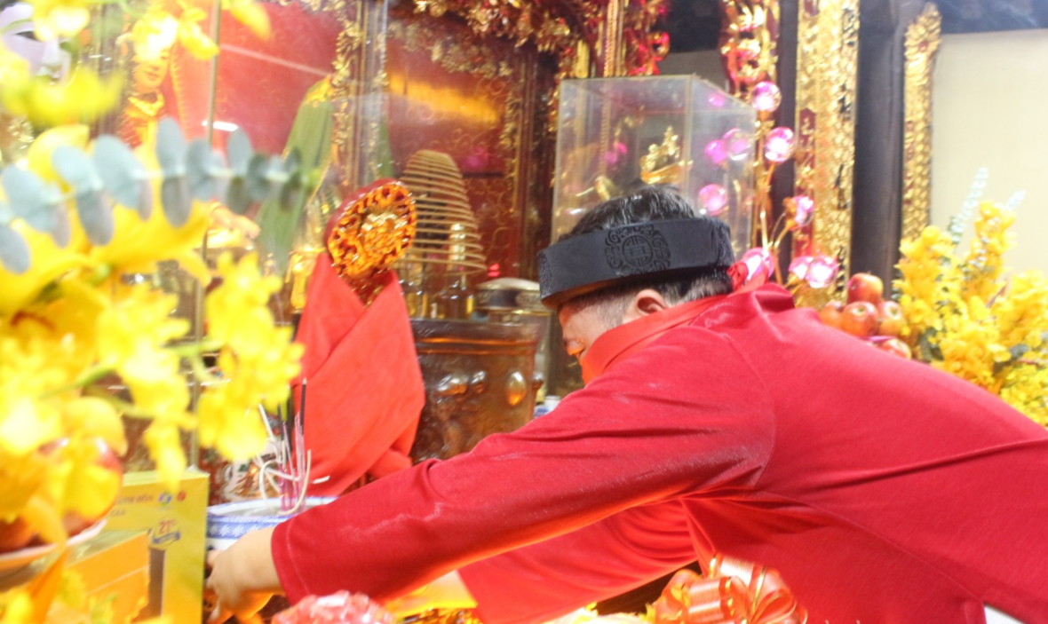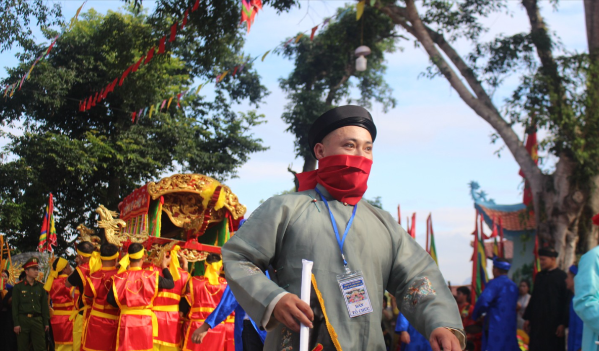 Những thanh đồng chịu trách nhiệm dẫn đầu mỗi kiệu và rước bát nhang, bài vị các vị Thánh vào đền đều đeo khăn vải đỏ che miệng vì theo quan niệm dân gian, con người hơi thở không được sạch sẽ và gây uế tạp, bất kính với các vị thánh.