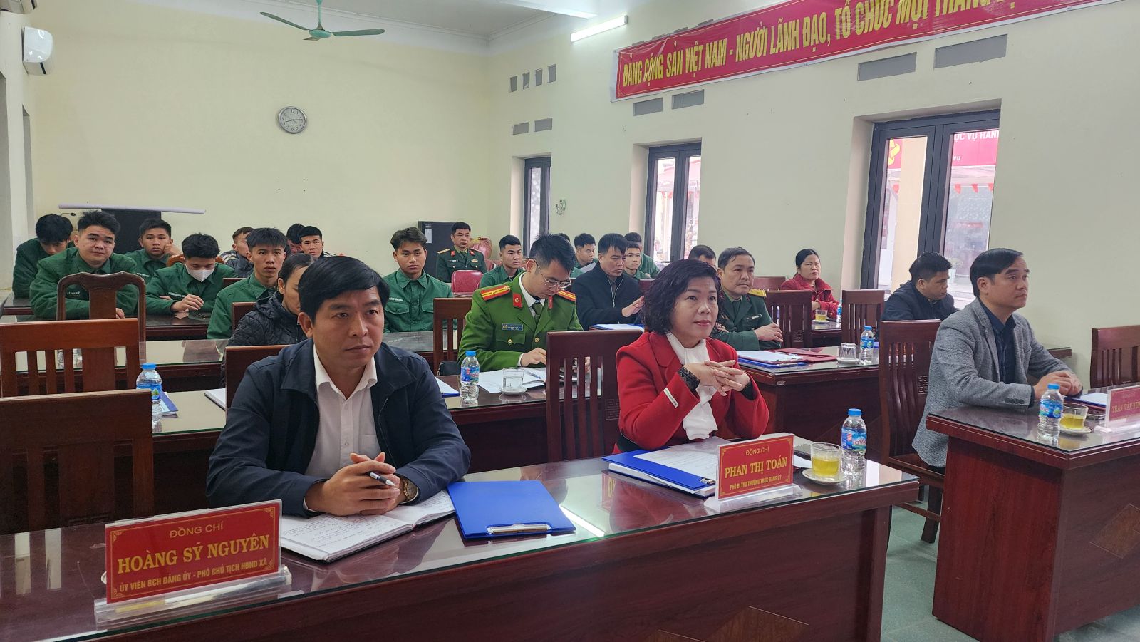 Phát biểu tại hội nghị, đồng chí Trần Văn Tùng, Phó Bí thư Đảng uỷ, Chủ tịch UBND xã thay mặt cho cấp uỷ, chính quyền địa phương chúc mừng, biểu dương, ghi nhận tinh thần trách nhiệm, ý chí rèn luyện và những đóng góp của các quân nhân trong thời gian tại ngũ. Đồng chí cũng đã thông tin tóm tắt một số kết quả nổi bật trên các lĩnh vực phát triển kinh tế, văn hoá xã hội, quốc phòng an ninh trên địa bàn xã trong thời gian qua, đồng thời mong muốn các quân nhân tiếp tục phát huy những phẩm chất tốt đẹp của Bộ đội cụ Hồ tham gia xây dựng quê hương, xung kích trong lao động sản xuất, vận động nhân dân thực hiện các chủ trương, đường lối của Đảng, chính sách pháp luật của Nhà nước. Các cơ quan, đơn vị, các thôn quan tâm tạo điều kiện cho các quân nhân được định hướng đào tạo nghề nghiệp, vay vốn, tham gia học tập, bồi dưỡng, phát triển đảng viên và tham gia các hoạt động chính trị, kinh tế, xã hội của địa phương.