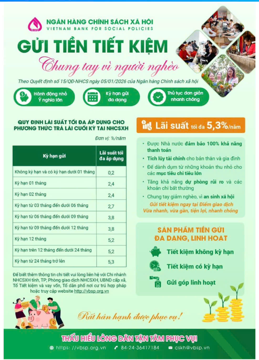 Thực hiện hướng dẫn số 10488/HD-NHCS ngày 05/12/2025 của Tổng Giám đốc NHCSXH về giảm lãi suất cho vay đối với khách hàng vay vốn NHCSXH theo Quyết định số 2654/QĐ-TTg ngày 04/12/2025 của Thủ tướng Chính phủ. Phòng giao dịch NHCSXH Hữu Lũng giảm lãi suất 2%/năm từ ngày 01/10/2025 đến 31/12/2025 đối với khách hàng vay vốn NHCSXH.