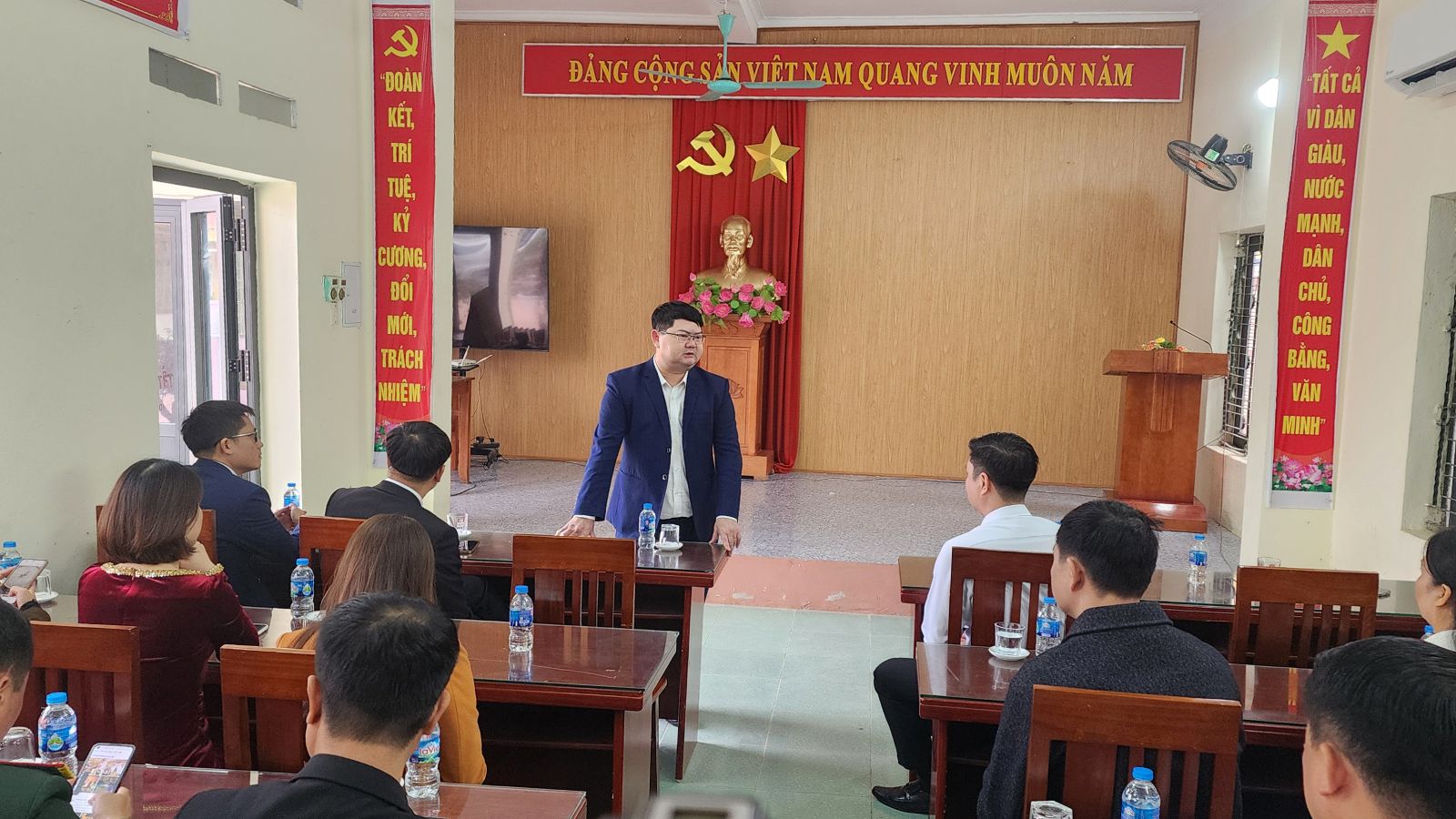 Đồng chí Nguyễn Vĩnh Phú – Bí thư Đảng ủy, Chủ tịch HĐND xã Tân Thành phát biểu tại buổi gặp mặt