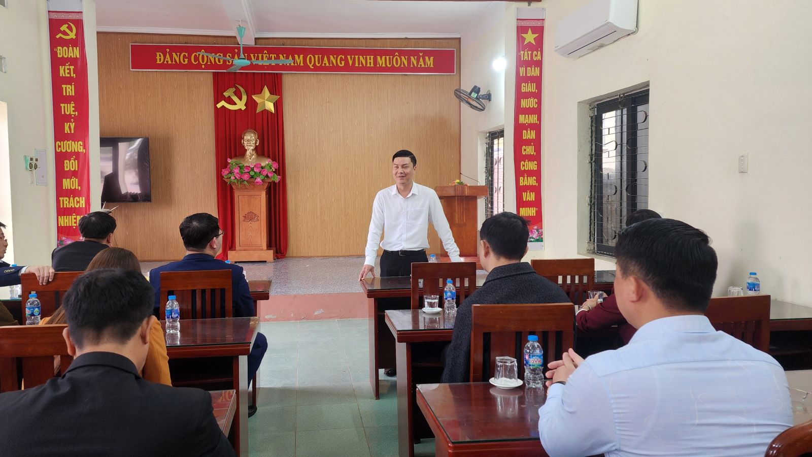 Đồng chí Nguyễn Văn Tuyền – Bí thư Đảng ủy, Chủ tịch HĐND xã Đông Phú phát biểu tại buổi gặp mặt