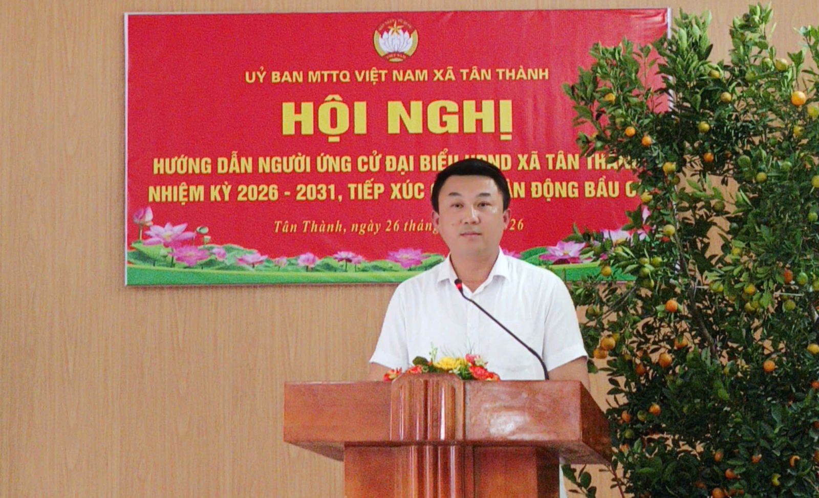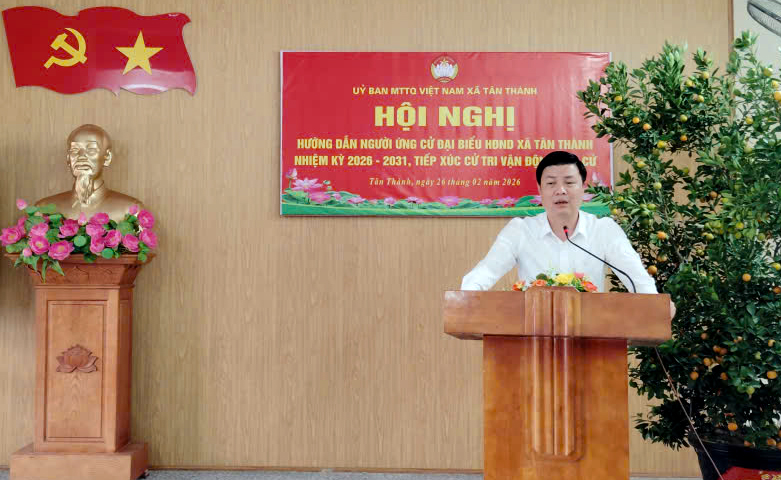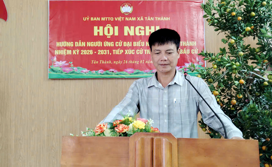 Ngày 26/02/2026, Ban Thường trực Ủy ban MTTQ Việt Nam xã Tân Thành tổ chức Hội nghị hướng dẫn người ứng cử đại biểu Hội đồng nhân dân xã nhiệm kỳ 2026–2031 vận động bầu cử.