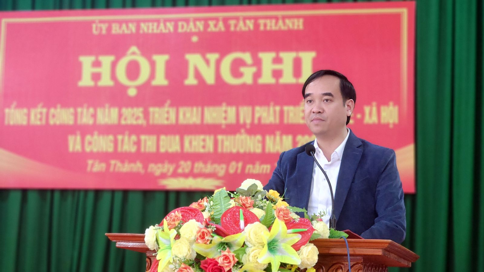 Sáng ngày 21/01/2026, UBND xã Tân Thành tổ chức hội nghị tổng kết công tác năm 2025, triển khai nhiệm vụ phát triển kinh tế - xã hội và công tác thi đua khen thưởng năm 2026. Đồng chí Nguyễn Vĩnh Phú, Bí thư Đảng uỷ, Chủ tịch HĐND xã dự và phát biểu chỉ đạo tại hội nghị.