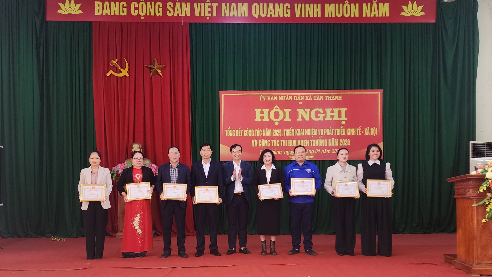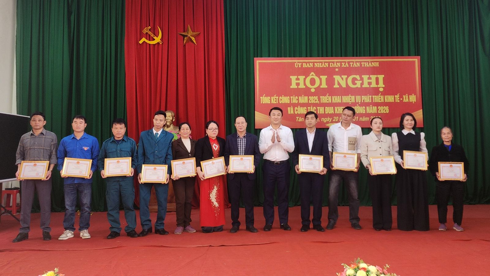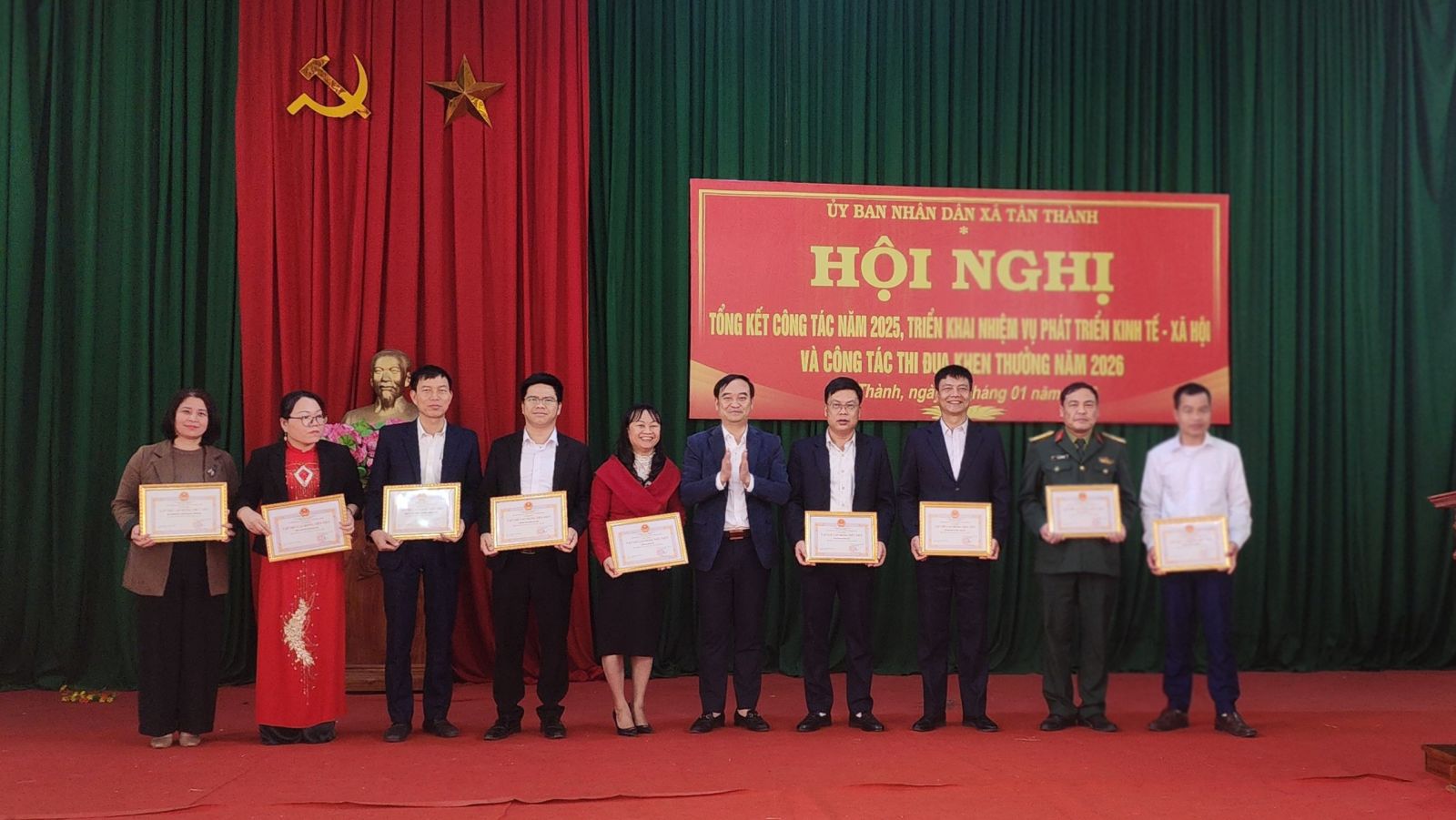 Nhân dịp này, UBND xã đã tặng giấy khen cho 17 tập thể, 22 cá nhân có thành tích xuất sắc trong công tác năm 2025 và phát động phong trào thi đua năm 2026.