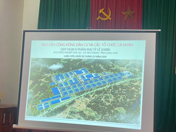 Chiều ngày 09/03/2026, tại Nhà văn hóa xã, UBND xã Tân Thành phối hợp với Ban Quản lý Khu kinh tế cửa khẩu Đồng Đăng – Lạng Sơn và đơn vị tư vấn tổ chức Hội nghị lấy ý kiến tổ chức, cá nhân và cộng đồng dân cư về Quy hoạch phân khu xây dựng Khu công nghiệp Hòa Lạc, tỷ lệ 1/2.000. Tham dự hội nghị có đại diện Ban Quản lý Khu kinh tế cửa khẩu Đồng Đăng – Lạng Sơn, lãnh đạo Đảng uỷ, HĐND, UBND xã, Uỷ ban MTTQ Việt Nam xã cùng đại diện các ban, ngành, đoàn thể, trưởng các thôn và 151 hộ dân trên địa bàn xã.