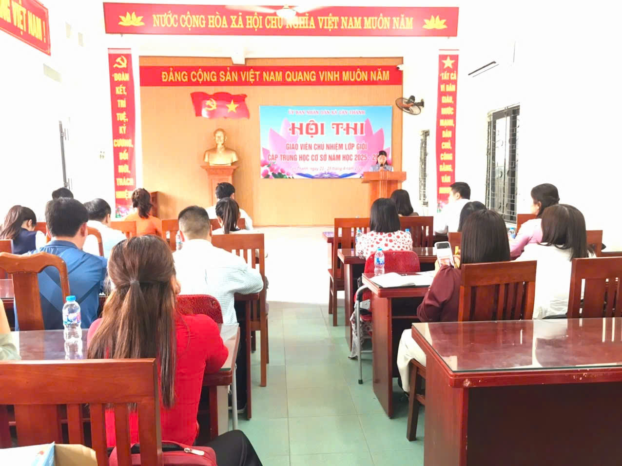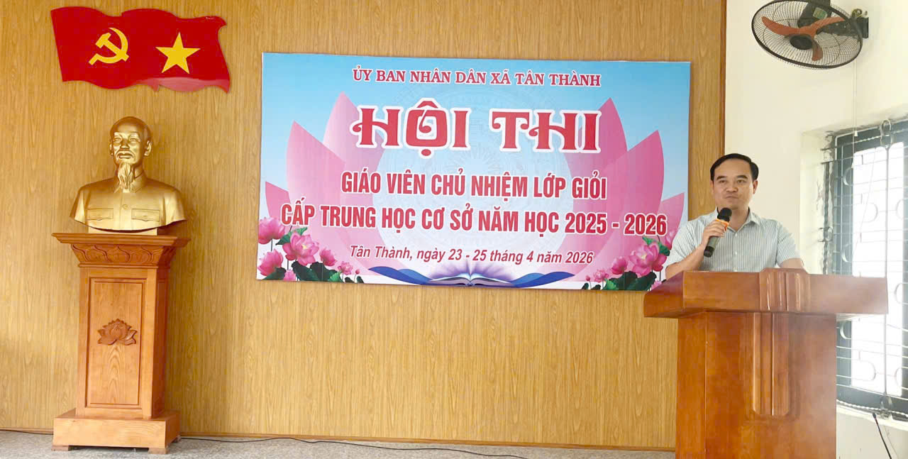 Thực hiện kế hoạch năm học 2025 – 2026, nhằm nâng cao chất lượng công tác chủ nhiệm lớp trong các trường học, từ ngày 23 đến ngày 25/4/2026, xã Tân Thành đã tổ chức Hội thi giáo viên chủ nhiệm lớp giỏi cấp THCS năm học 2025 – 2026. Hội thi có sự tham gia của các giáo viên chủ nhiệm tiêu biểu đến từ các trường THCS trên địa bàn xã. Đây là những giáo viên có năng lực chuyên môn vững vàng, tâm huyết với nghề, có nhiều kinh nghiệm trong công tác giáo dục và quản lý học sinh.