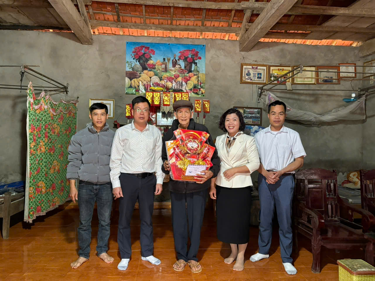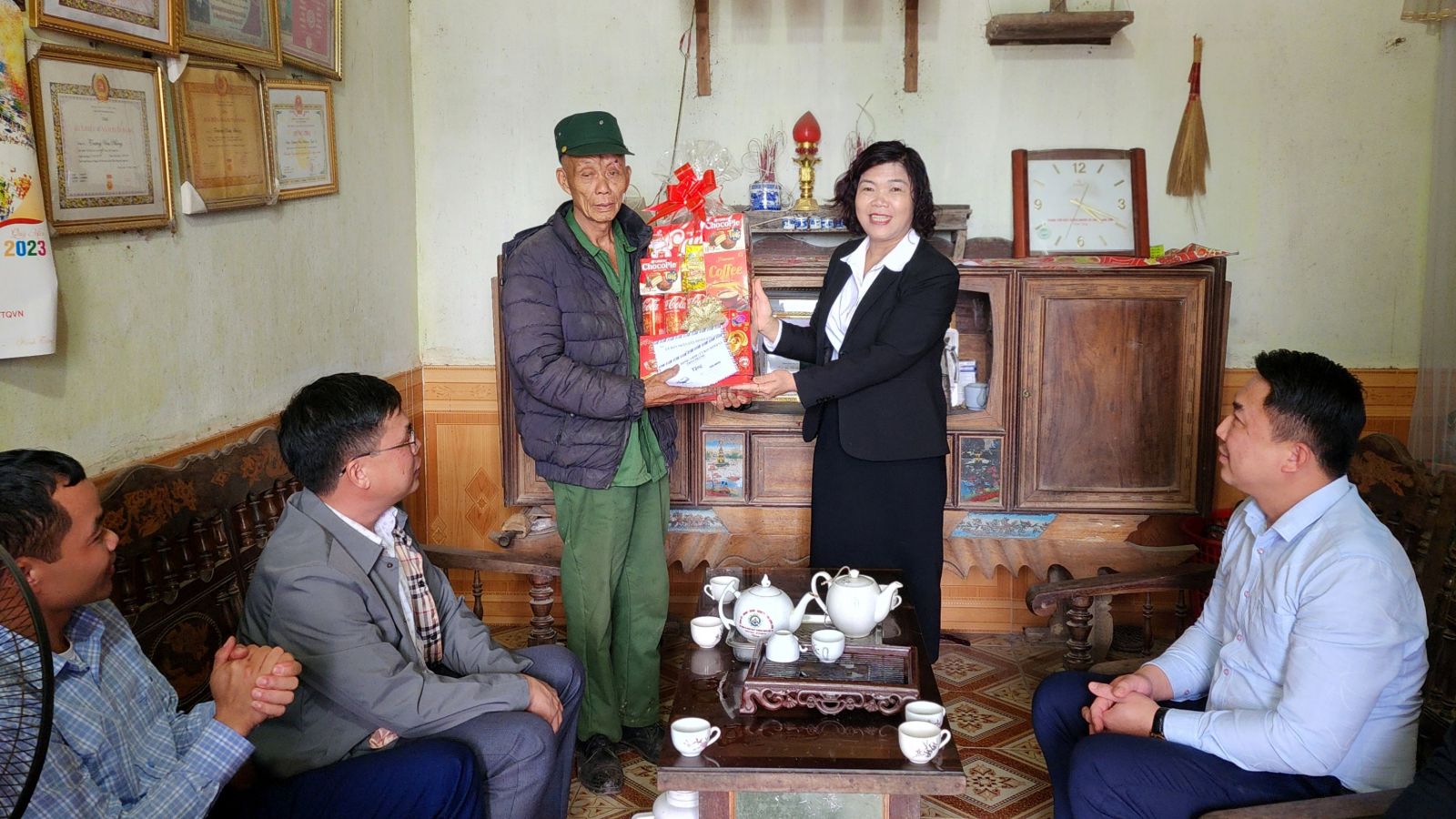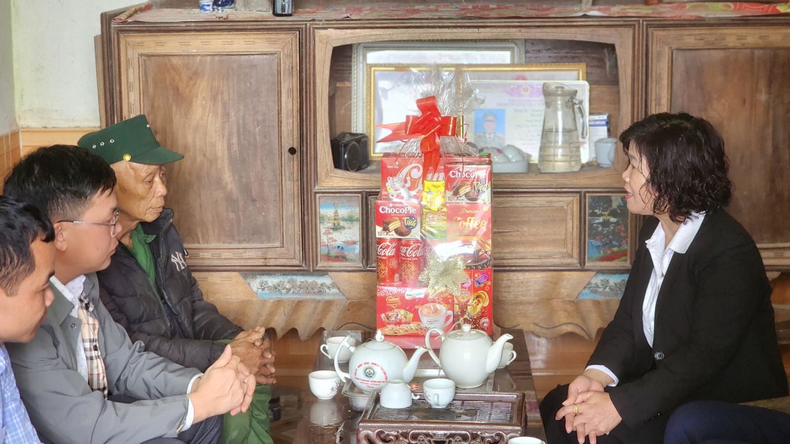 Tại các gia đình đến thăm, thay mặt đoàn, Đồng chí Bí thư Đảng uỷ xã đã thông tin nhanh về một số nét nổi bật trong phát triển kinh tế, xã hội, quốc phòng, an ninh trên địa bàn xã trong năm qua. Đồng chí cũng ân cần thăm hỏi sức khỏe, đời sống, bày tỏ lòng tri ân sâu sắc đối với những đóng góp, cống hiến của các cá nhân, gia đình đối với sự nghiệp cách mạng và sự phát triển của địa phương; đồng thời tặng quà, chúc các gia đình đón Tết cổ truyền đầm ấm, vui tươi, hạnh phúc.