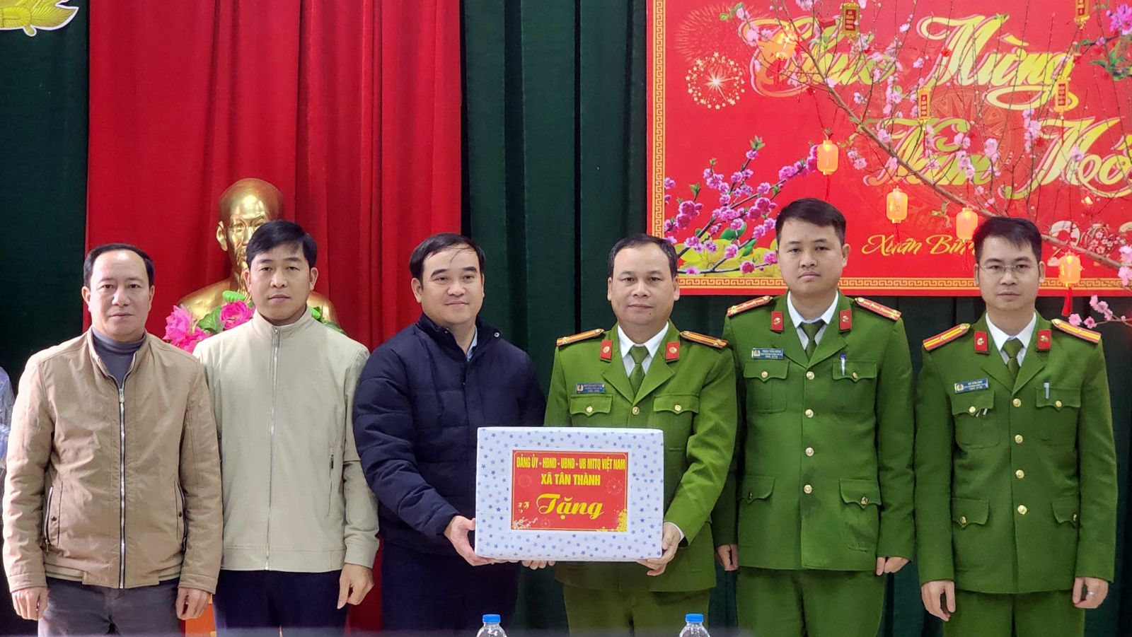 Tiếp đó, Đoàn công tác đã đến thăm, chúc Tết Trung đoàn Bộ binh 141 đóng quân tại thôn Đồng Thủy và tập thể cán bộ, chiến sĩ Công an xã Tân Thành.