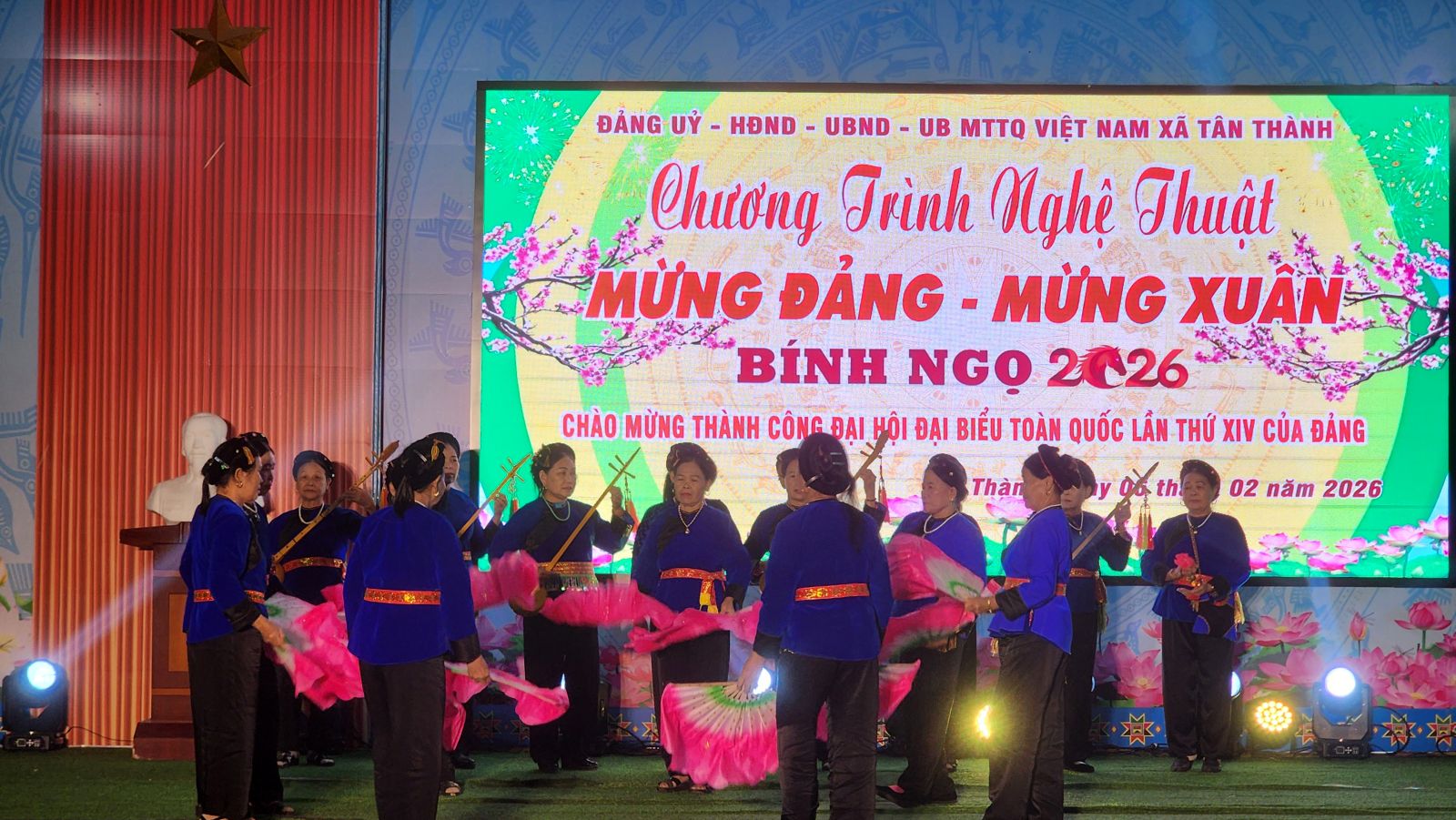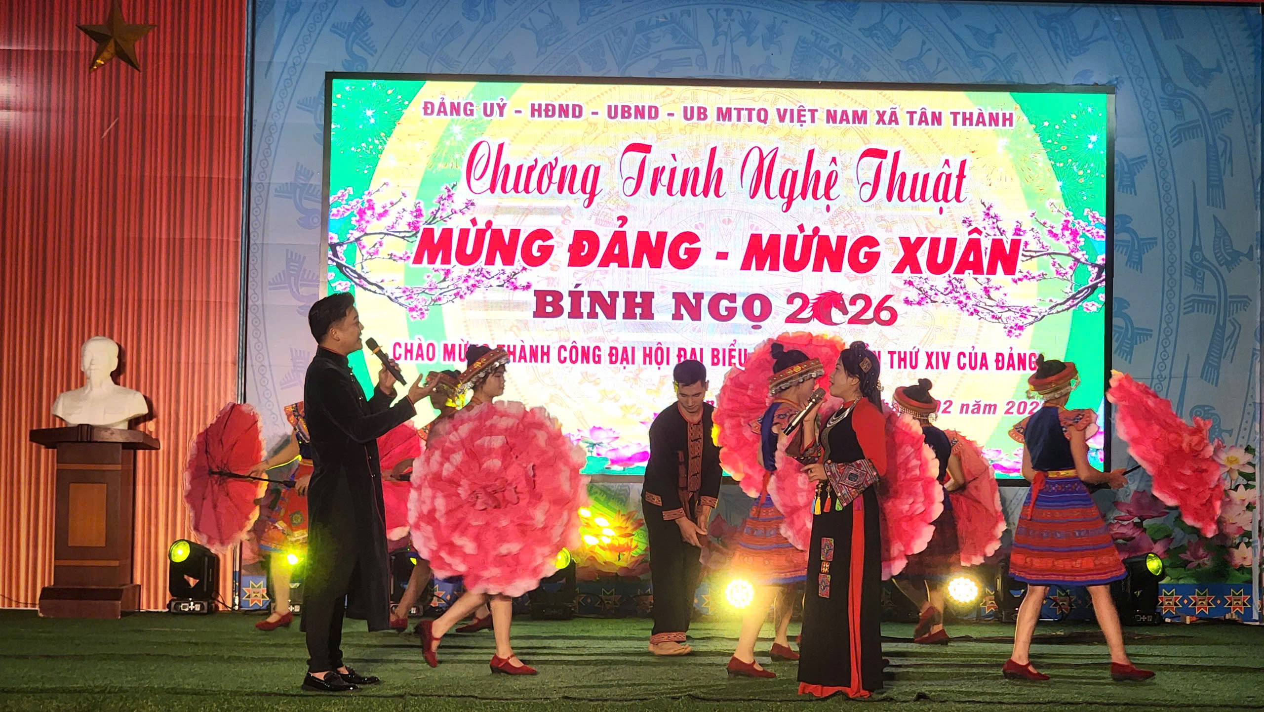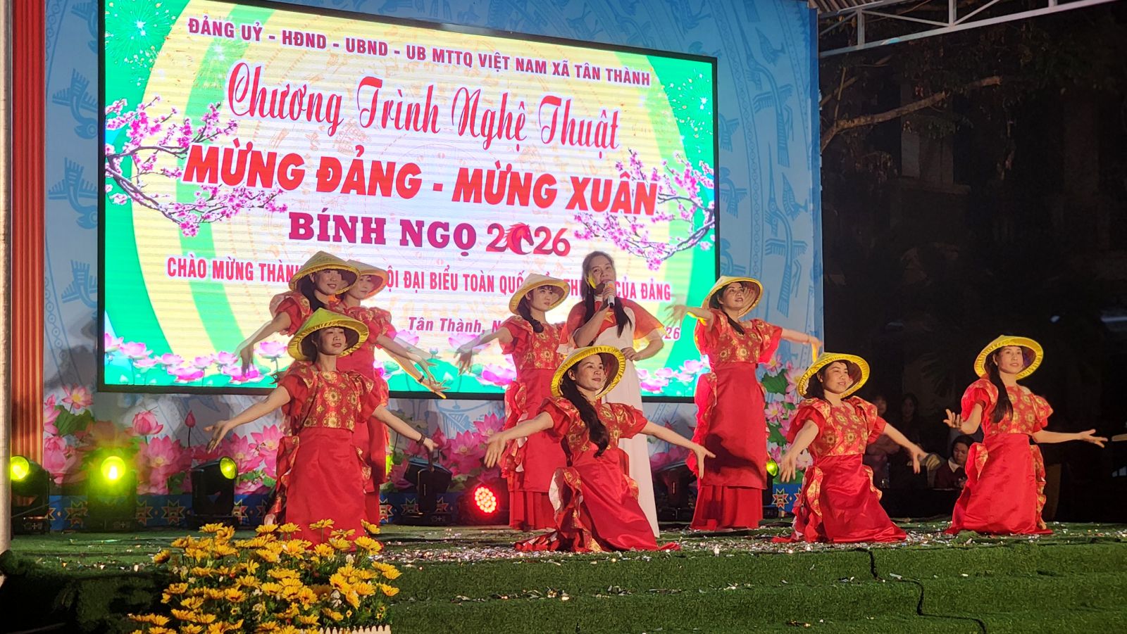 Tối ngày 06/02/2026, tại sân trường THPT Tân Thành, Đảng uỷ, HĐND, UBND, UB MTTQ Việt Nam xã Tân Thành tổ chức chương trình nghệ thuật mừng Đảng, mừng Xuân Bính Ngọ năm 2026, chào mừng thành công Đại hội đại biểu toàn quốc lần thứ XIV của Đảng.